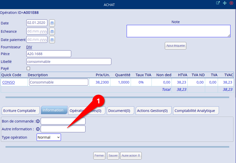 • communication depuis le détail opération dans l’onglet “Information”, le texte dans “Autre information”